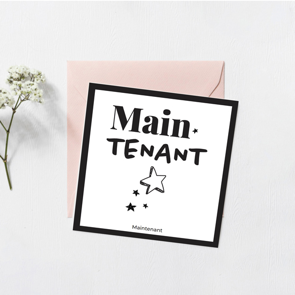 Carte Jeux de mots : Main tenant/Maintenant – Carte à télécharger 10cm x 10cm.